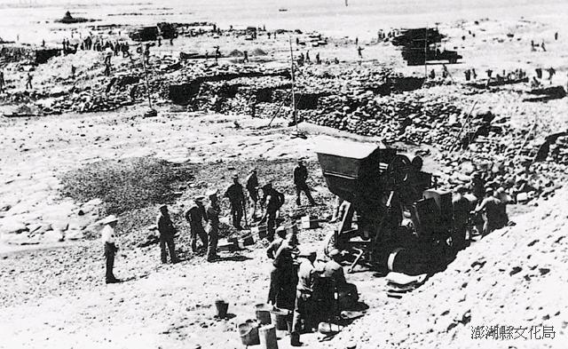 跨海大橋黑白影像|興建跨海大橋|影像來源:澎湖縣文化局。