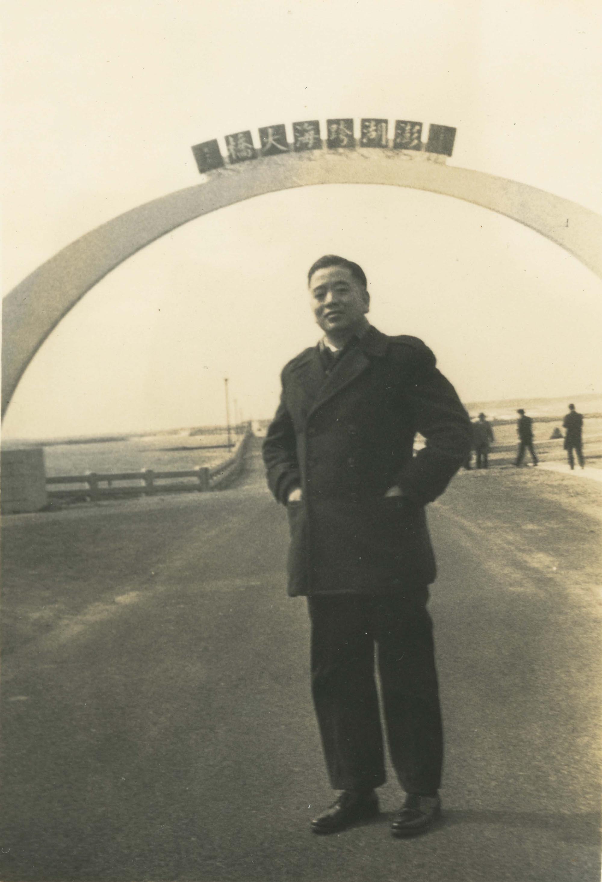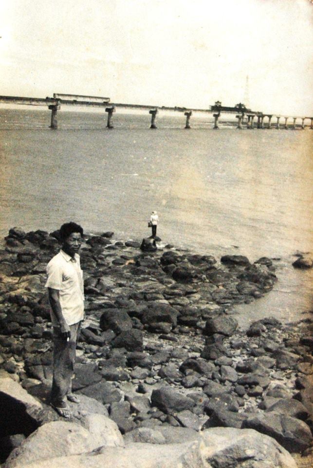 跨海大橋黑白影像|1968年,跨海大橋施工中|影像來源:楊洋甫先生。