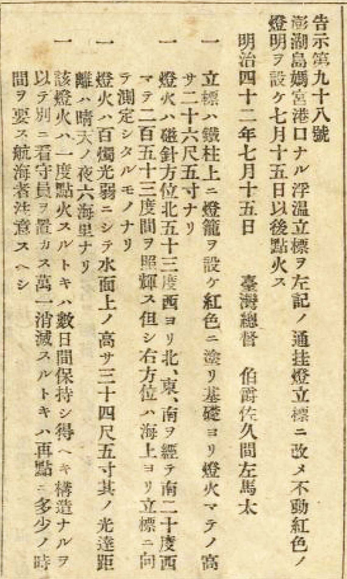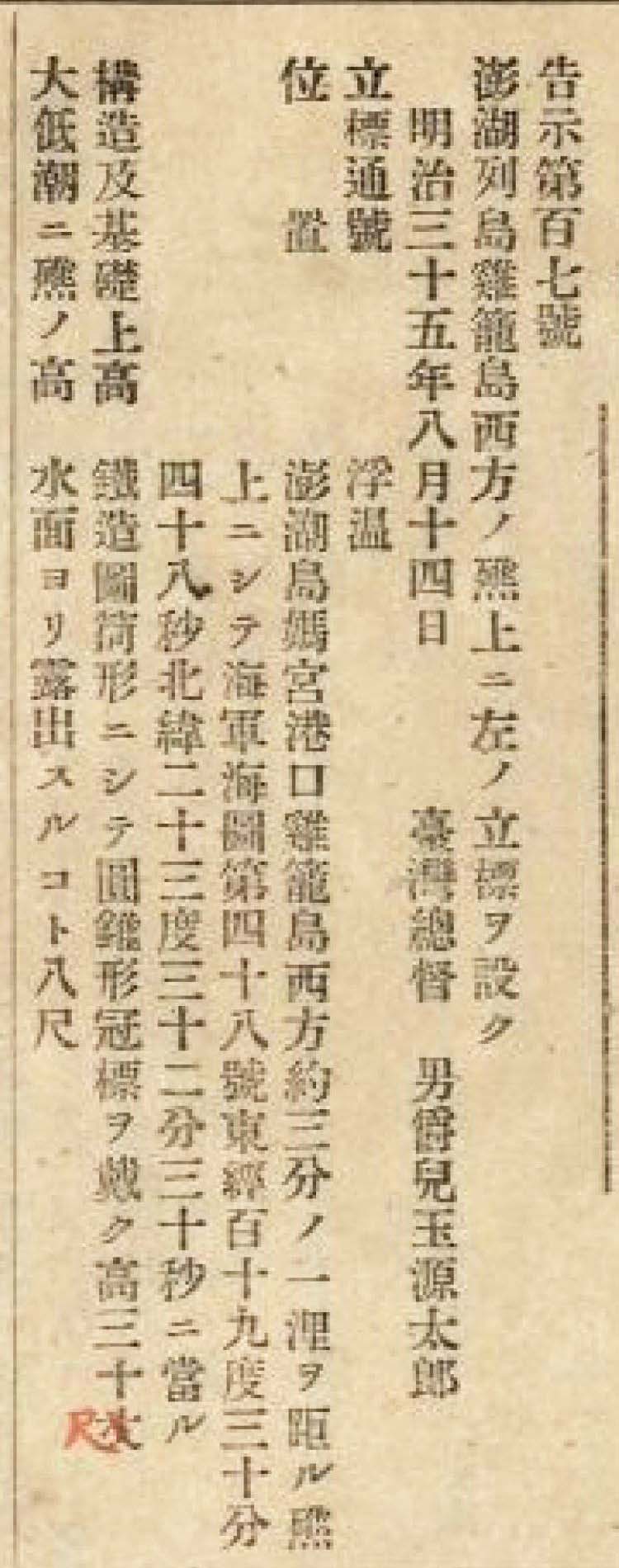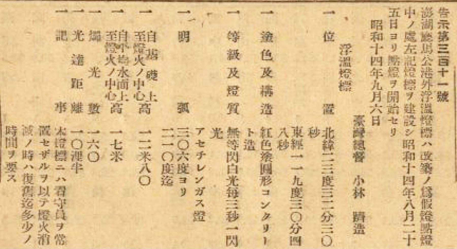浮塭燈竿文獻|特別感謝kotaine|影像來源:Report on Taiwan Lights 1946。