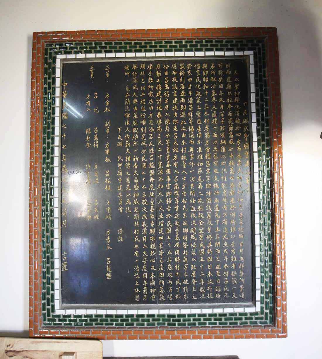 影像分類:廟碑 2018武聖廟記錄|拍攝日期:2018-10-05(星期五)