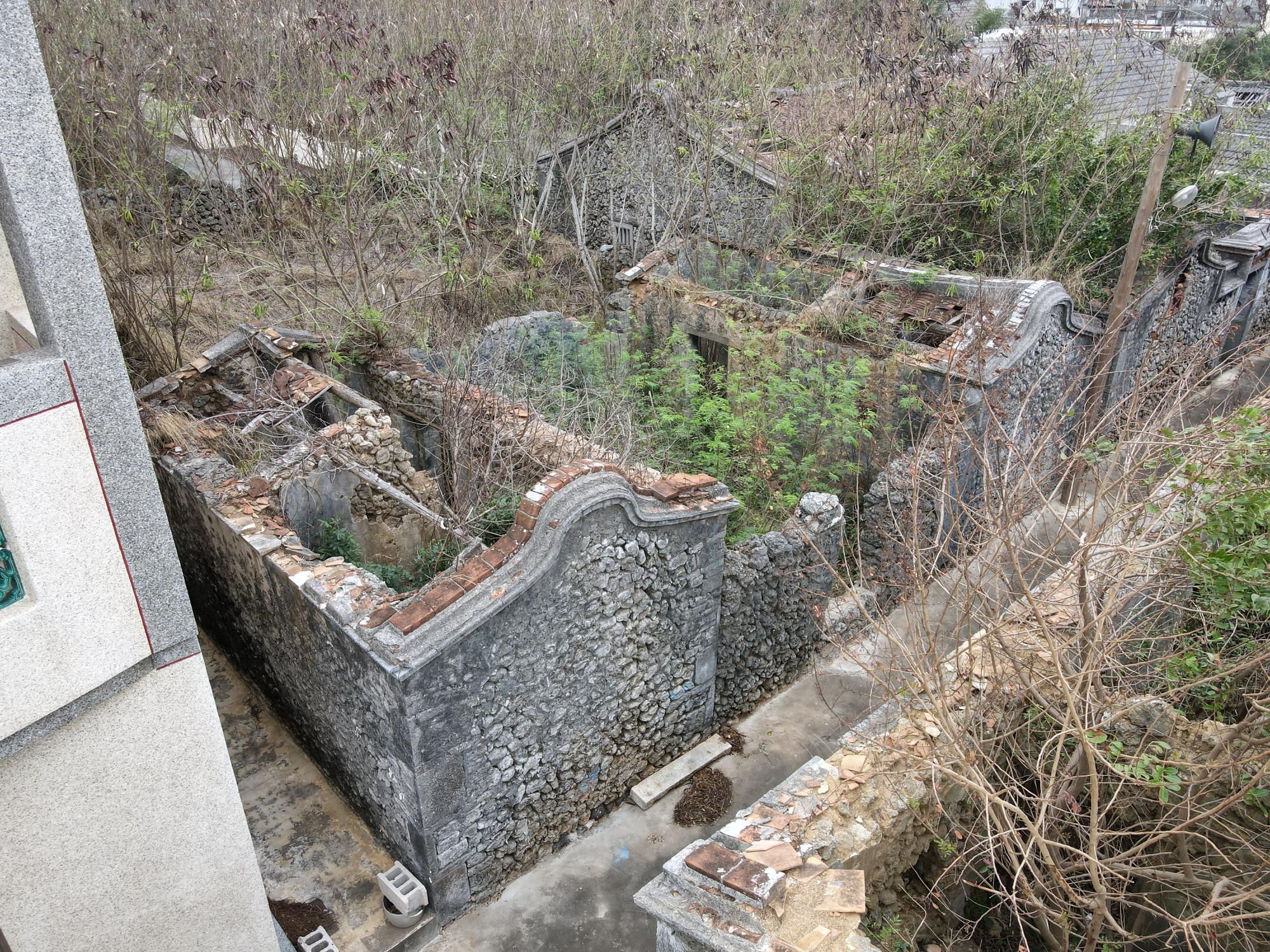 人,大門右側的牆上安置一個陶甕,陶甕種植一棵曼陀羅。後方圍牆的東北角原本有一方石敢當,今日也不見蹤影。締師與締婆生卒年不詳,曼陀羅已然枯萎,僅餘破敗的古厝與陶甕,憑弔故鄉武術家─締師。
