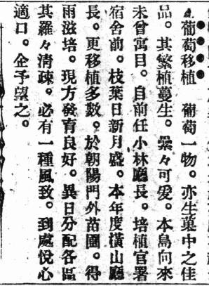 葡萄一物,亦生菓中之佳品。其繁殖蔓生,纍纍可愛。本島向來未曾寓目,自前任