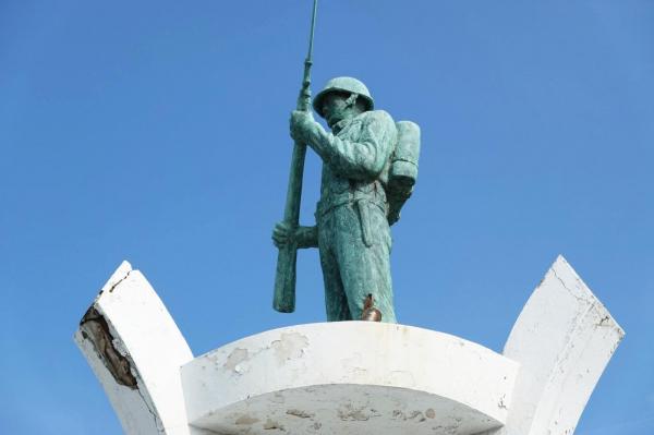媲美。隨著國間軍事政策的調整,澎湖駐軍逐漸減少,步兵雕像也在歲月的流逝中破損、剝落。撞球間、冰果室陸續的褪下他繁華的面紗,7-11、休閒小站、美而美早餐店等新一波的連鎖商店立即進駐,接下棒子。屹立近四十年的步兵雕像,
