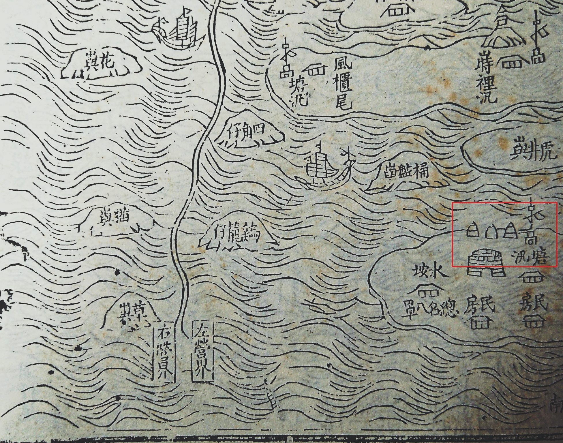 內垵畫有石塔三座,旁邊的文字註明塘汛。無獨有偶,