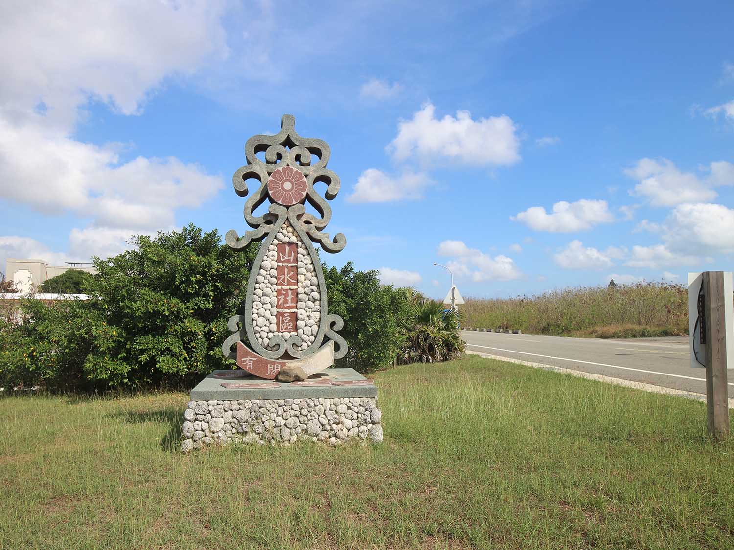 山水國小前也出現了一些樓房,聚落中大部份的老舊房子則紛紛重建成新式的樓房,和一些具有特色的傳統閩南式建築,交錯呈現出傳統和現代兩種不同的風貌。
