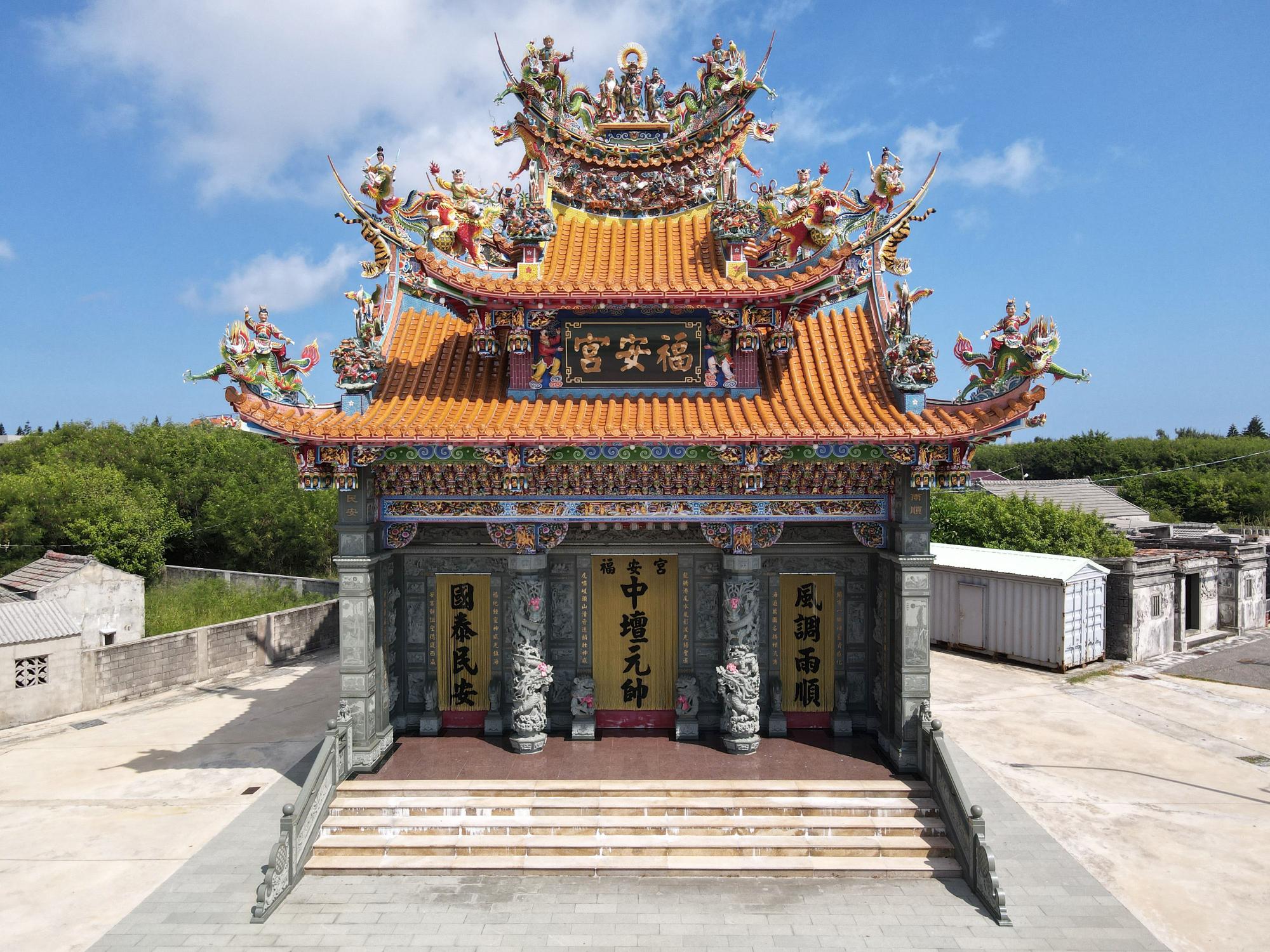 的「福安宮」坐鎮於港口,主祀哪吒三太子。宮廟格局古樸傳統,小而雅緻,廳前行草楹聯俗禒「八分字」,意境天戎,左以