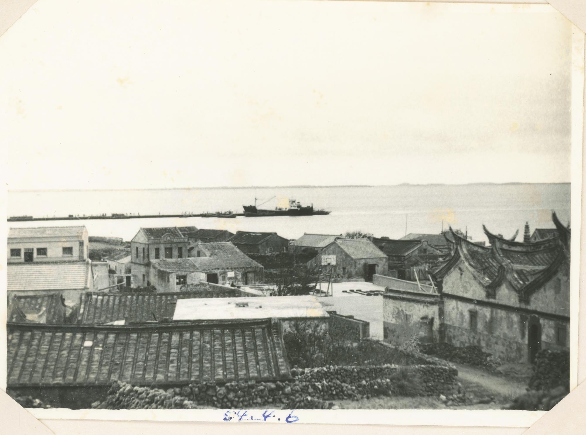 漁翁島北部中部四面環海東南臨海灣四北有丘陵屏障在未開拓前吾光民原住金門後埔陳坑一帶當年因避兵災乘槎浮海駕舟楊帆抵達本島由陳蔡許吳葉林等諸人氏察及四岸有溪流稱謂「紅面糸」一小海灣從此登陸開墾荒地築屋而居惜因地皆不毛無法耕作生計維艱乃議遷徙適探環境發現港灣之內水平如鏡傍有丘陵其下竹林叢生喜謂世外桃園遂在此托足以漁耕為活斯時南面有土丘形如海龜稱龜頭山東北丘陵之溝又如枕狀號蛇山自是龜蛇二景相拱護環境幽雅先民在此定居已不再思遷乃定名此社為「