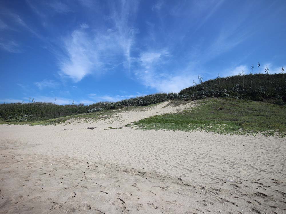 」的一座白色貝殼沙丘,由於東西兩邊風向不同,經日積月累的堆積,而形成一座突起的小沙丘,因形似牛的背脊而取名為「牛母山嶺」。