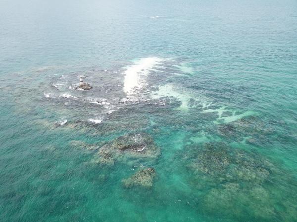 礁,南邊有小片沙灘,附近還有二塊較大岩礁,因為